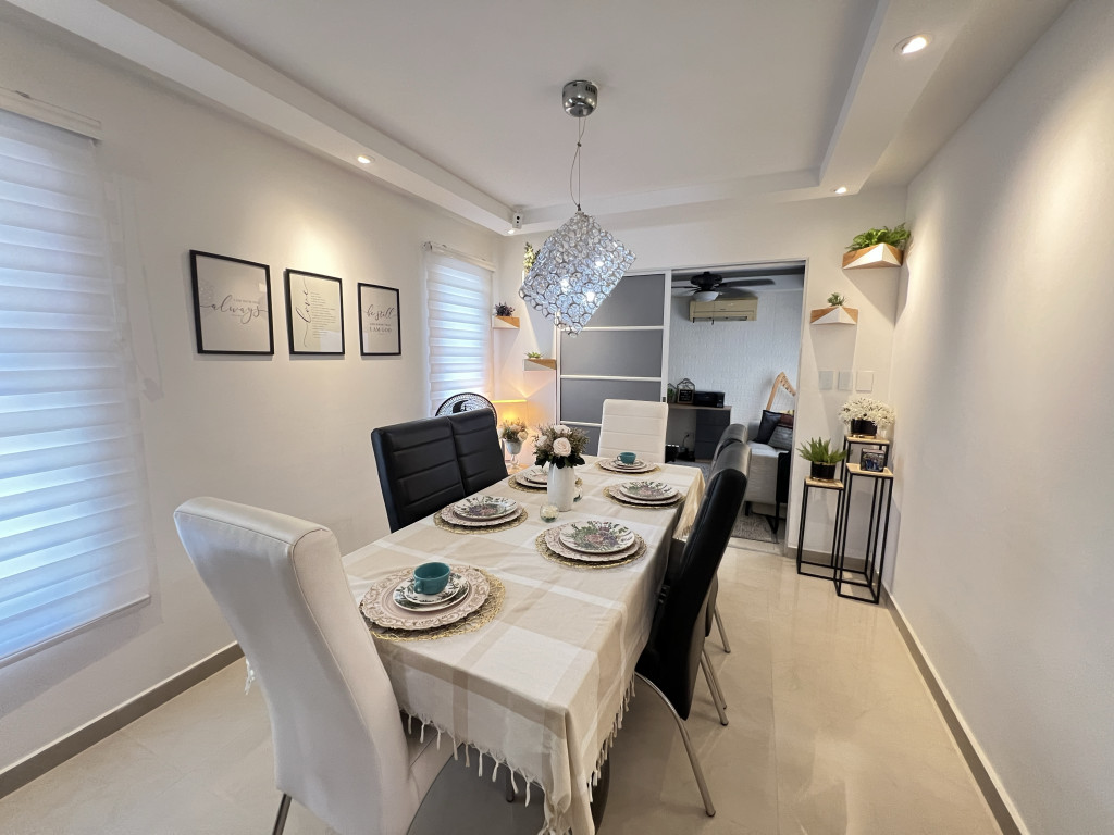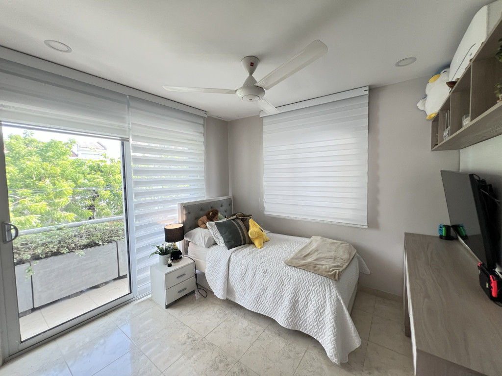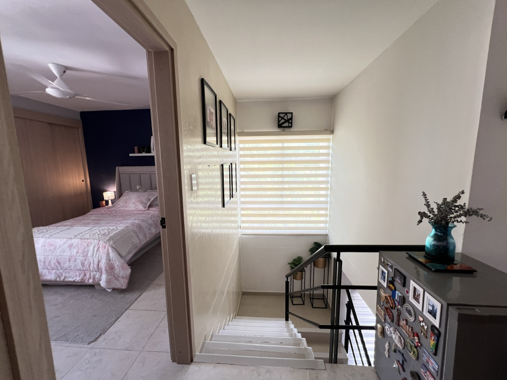 Casa conjunto de 2 niveles en venta, ubicada en el sector de Villa Santos al norte de la Ciudad de Barranquilla, sector tranquilo, de fácil acceso y transporte, cerca de centros comerciales, hoteles, corredor universitario, vía al mar, colegios y grandes parques. La casa cuenta con aproximadamente 153 m2, en el 1er nivel tiene sala, comedor, baño social, cocina integral, estudio, alcoba y baño para el servicio y un patio con zona de labores. En el 2do nivel encontramos un amplio hall con closet de lino, 3 alcobas con closets, cuenta con ventanas termoacústicas, aires acondicionados y abanicos, 1 Vestier, baño privado y auxiliar, balcón y terraza. La casa cuenta con cortinas y 2 garajes privados. El conjunto residencial es muy tranquilo, tiene portería, parqueo de visitantes y solo son 7 casas