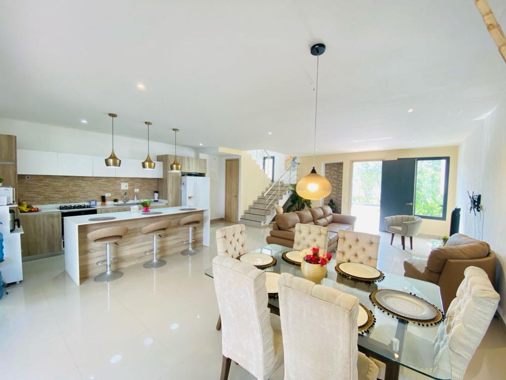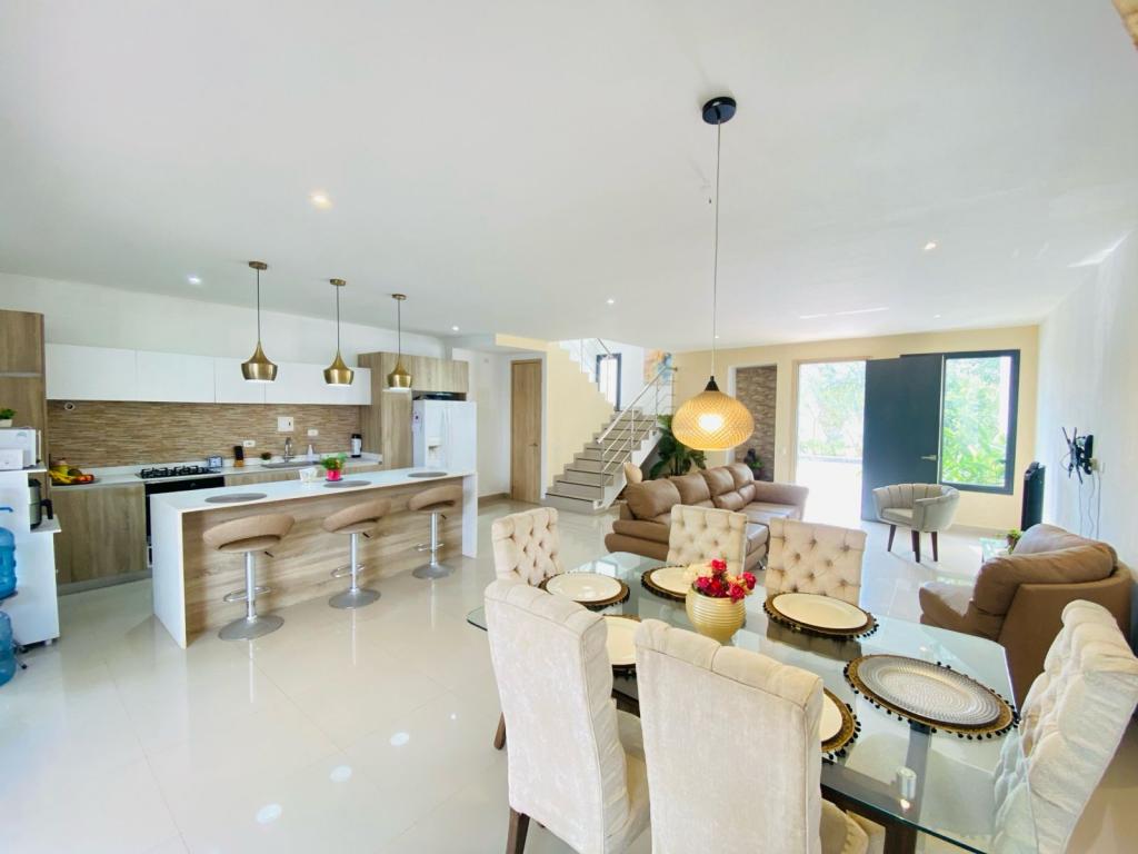 Casa Dúplex en venta, descubre el hogar de tus sueños en el corazón de Turbaco, una casa dúplex exquisitamente diseñada en el conjunto residencial más exclusivo de la zona. Imagina vivir rodeado de la serenidad que ofrece la naturaleza, en una comunidad que redefine el concepto de vivienda familiar contemporánea. Esta hermosa vivienda se asienta sobre un generoso lote de 269 m2, construcción inteligentemente distribuidos en dos niveles, cada espacio ha sido pensado para tu confort y el de tu familia. Disfruta de una luminosa sala y comedor, ideales para crear recuerdos inolvidables, y tres habitaciones que prometen descanso y privacidad,3 tres alcobas tres baños, la cocina integral abierta,cuarto y baño de servicio , amplio patio con zona de labores.un parqueadero,además cuenta con los servicios , luz, gas , agua