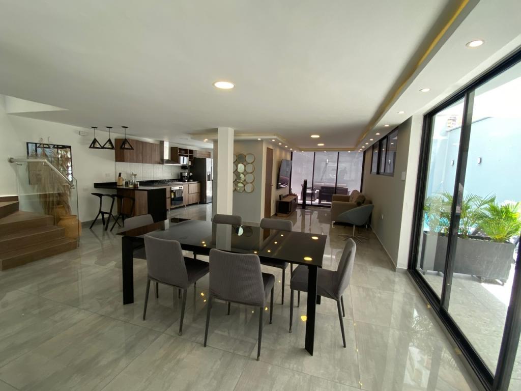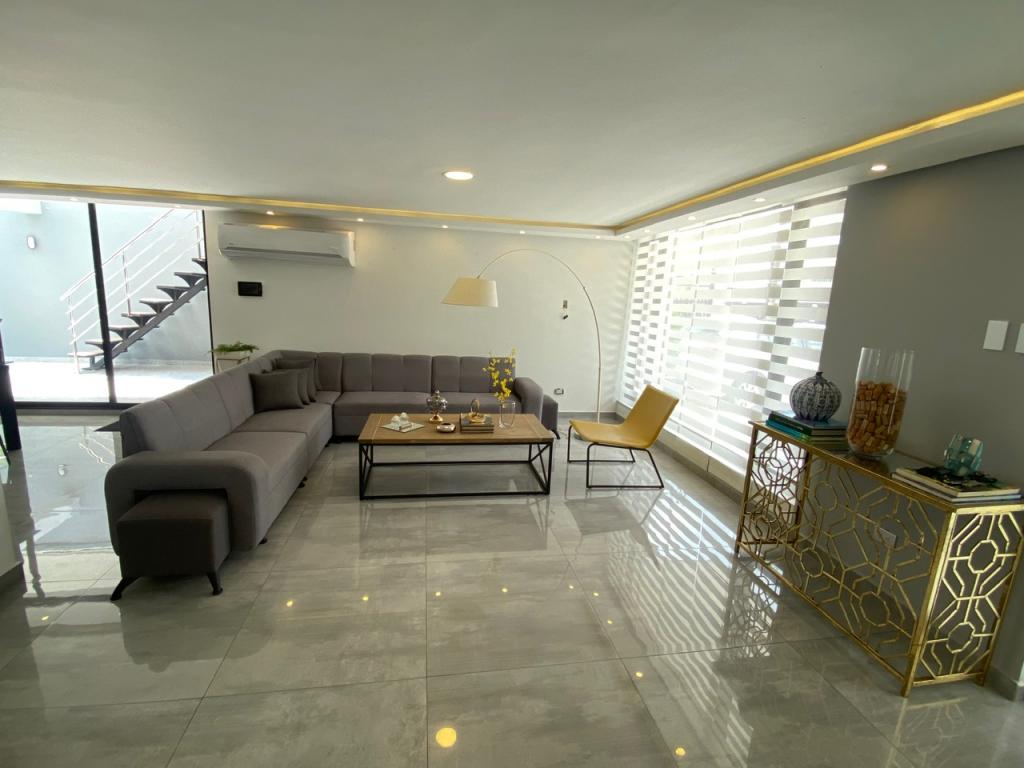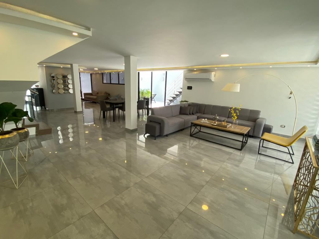 Casa de lujo en arriendo o venta ubicada en el sector exclusivo de Riomar, al norte de la Ciudad de Barranquilla. sector tranquilo, de fácil acceso y transporte; cerca de Centros comerciales, colegios y parques. La casa cuenta con 2 niveles, acabados nuevos tipo minimalista industrial, grandes espacios, terraza con cerramiento eléctrico y alarma, sistema de vídeo portero, cerradura digital, domotica en luces de interiores y exteriores, 2 garajes externos dentro del cerramiento y 2 cubiertos, sala, comedor, estudio y estar, baño social, cocina integral con pantry tipo americano, area de labores, alcoba y baño para el servicio, patio terraza social, amplia piscina, 3 alcobas grandes, 3 baños, vestier y balcón panorámico.