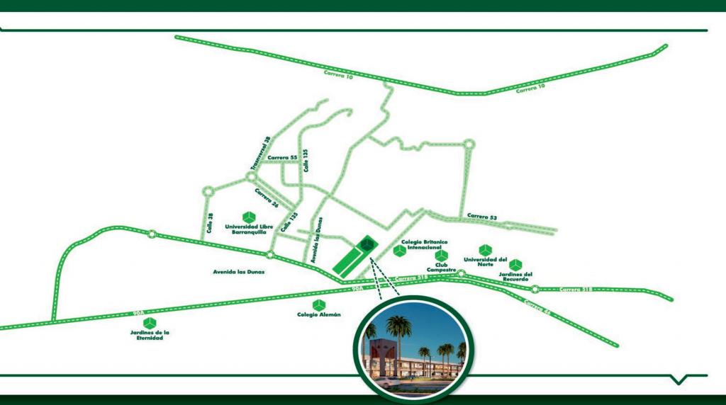 Proyecto comercial para arriendo o venta ubicado en la zona de Villa Campestre en el sector de Puerto Colombia a la afueras de Barranquilla. Constituido por locales comerciales con áreas desde 13.95 mt2 hasta 534mt2 distribuidos en dos etapas. La primera etapa cuenta con 2 pisos con 132 locales comerciales, 277 parqueaderos para autos en el primer piso y 40 para motos, su acceso doble al centro comercial. Se encuentra ubicado sobre la vía principal del corredor universitario e internamente por villa campestre. Además, cuenta con 2 escaleras eléctricas, 3 ascensores y 3 escaleras de mampostería. Este centro comercial cuenta con un diseño abierto pero cubierto en zonas de parqueo y peatonales – con cómodas vías de acceso, gran flujo peatonal y vehicular – sector de alta valorización y crecimiento