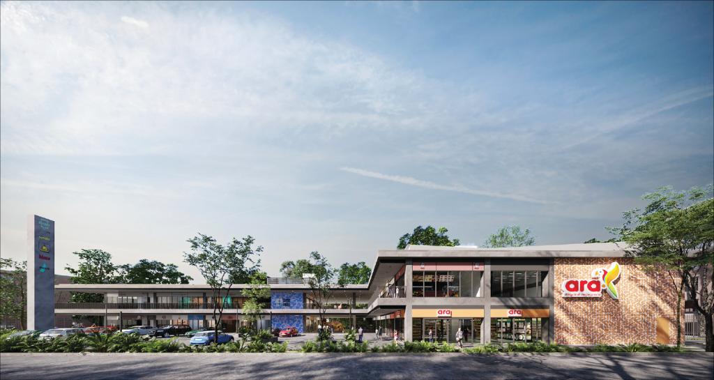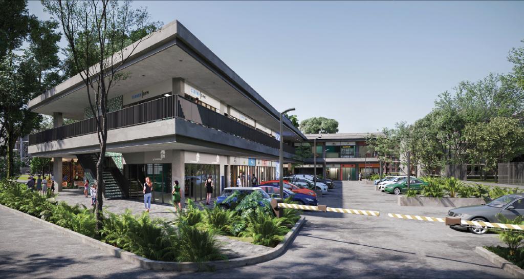 El proyecto se desarrolla en 2 bloques principales, cada uno de dos pisos. El bloque A consta de 22 locales, 9 locales en primer piso y 11 en el segundo, en el que está ubicado un local ancla de Tiendas ARA y 2 espacios para cajeros automáticos. El bloque B consta de 38 locales, 19 en primer piso y 19 en segundo piso. El Centro Comercial tiene además una plazoleta de activación en el 1er piso y una plazoleta de comidas en el 2do piso y cuenta con ascensor