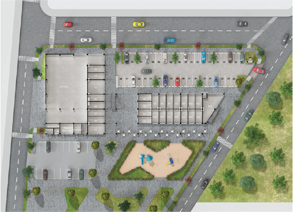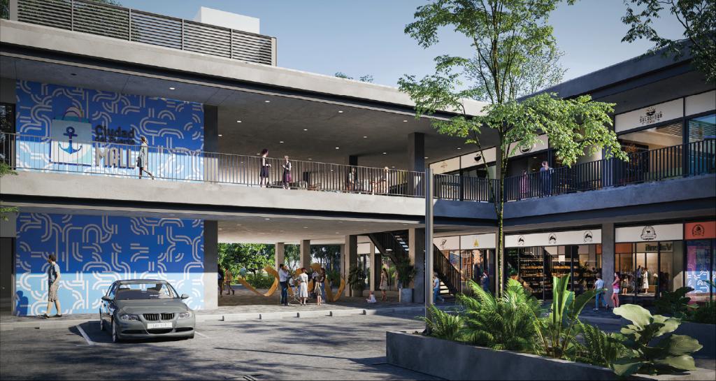 El proyecto se desarrolla en 2 bloques principales, cada uno de dos pisos. El bloque A consta de 22 locales, 9 locales en primer piso y 11 en el segundo, en el que está ubicado un local ancla de Tiendas ARA y 2 espacios para cajeros automáticos. El bloque B consta de 38 locales, 19 en primer piso y 19 en segundo piso. El Centro Comercial tiene además una plazoleta de activación en el 1er piso y una plazoleta de comidas en el 2do piso y cuenta con ascensor