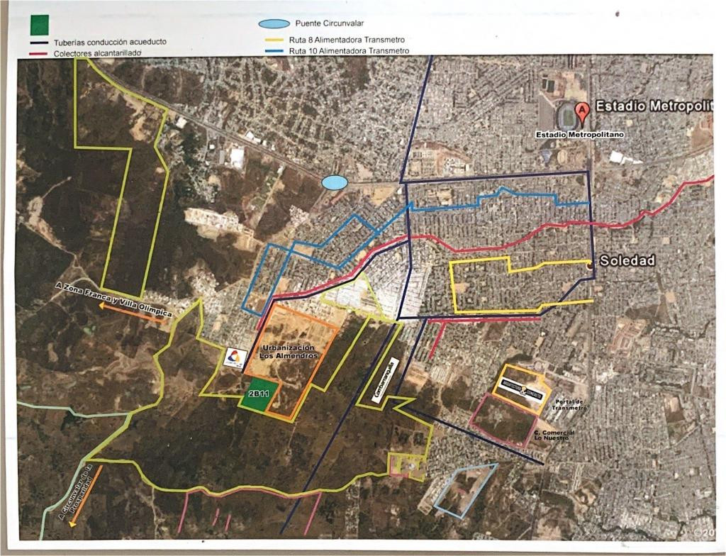 Se vende lote con un área de 11.254,72 m2 lo que equivale a aproximadamente 1 hectárea de terreno – ubicado en el área metropolitana de Barranquilla con jurisdicción del municipio de soledad – colinda con la urbanización de los almendros y sector de comfamiliar etapa V y terrenos de construcciones de Marval – el lote cuenta con un acceso a la avenida circunvalar por medio de las calles 81,82 y 84, adicionalmente a la avenida murillo y circunvalar por medio de la ruta alimentadora N° 10 del sistema de transporte masivo del área metropolitana (Transmetro)- cómodas vías de acceso – transporte publico cercano