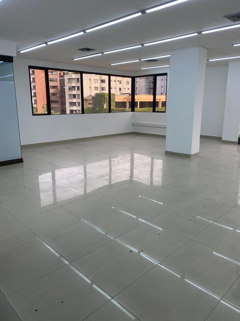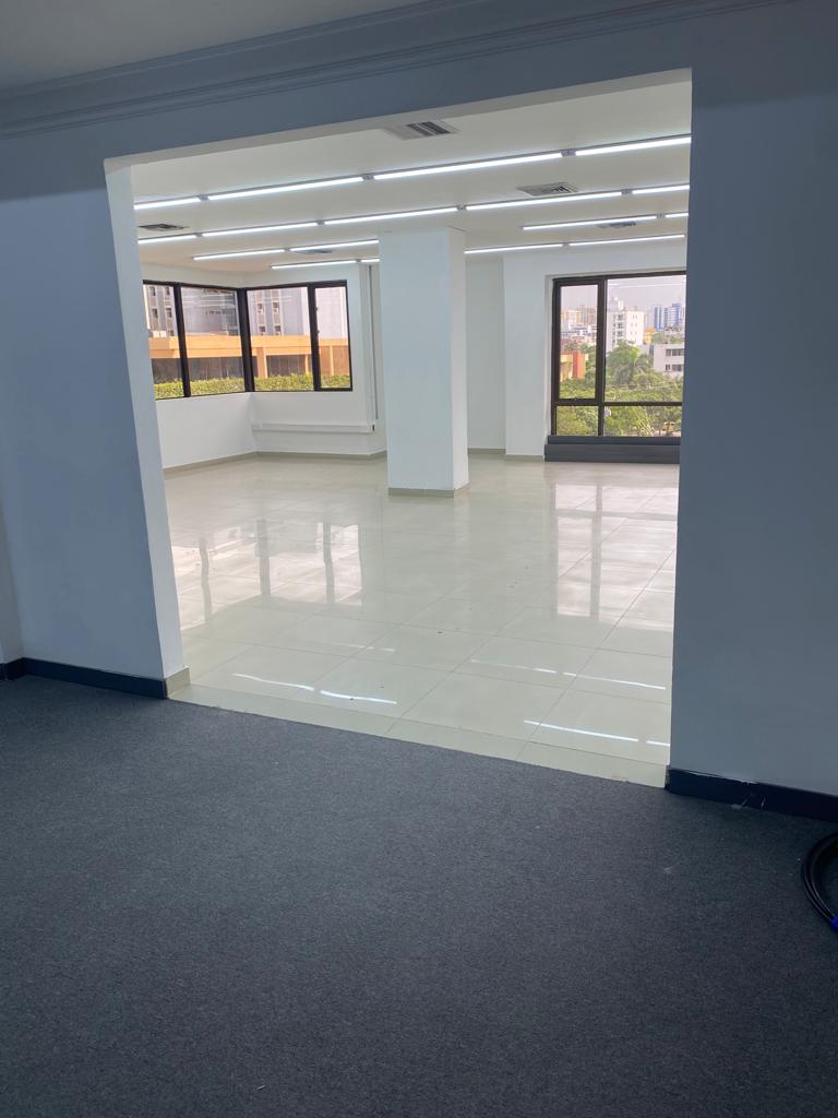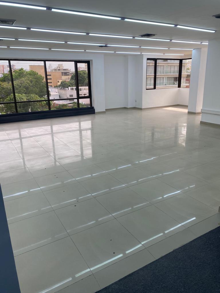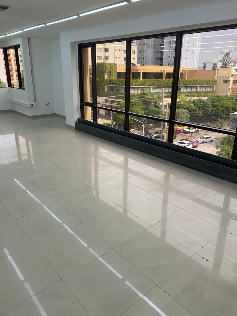 Oficina comercial en arriendo con 152 m2, ubicada en Centro Empresarial en el sector de Alto Prado al norte de la Ciudad de Barranquilla, sector con alta actividad económica, cerca de bancos, almacenes de cadena, hoteles, restaurantes, otros centros empresariales y comerciales, alto flujo vehicular y facilidad de transporte publico; la oficina esta del lado sombra y cuenta con grandes espacios, 2 baños remodelados, excelente vista a la Ciudad, cocineta, aire central, iluminación y 3 garajes privados; el edificio tiene planta eléctrica de abastecimiento total, recepción, baterías de baños en cada piso, vigilancia, ascensores, amplios parqueaderos externos e internos.